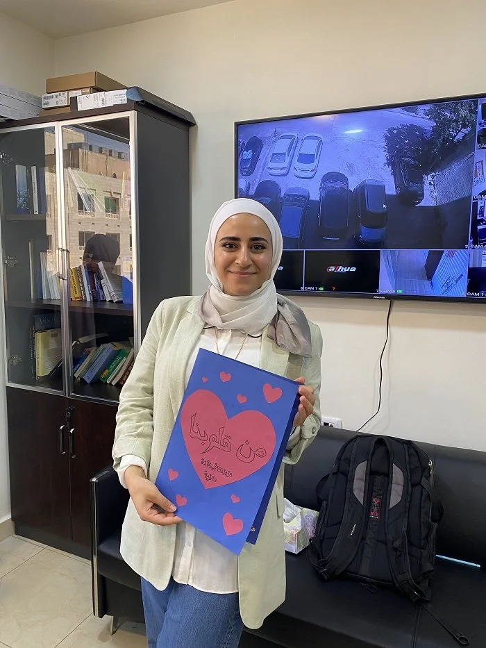 My professor is a great part of the reason that my summer was amazing as many of my classmates would agree for themselves too. Ustaza (teacher) Dania is one of the most compassionate and patient teachers I’ve ever met. Our class wanted to prepare something special for her. Since our class had eight students, there was no way a small card could carry all of our love and appreciation for her. I used my handicraft skills to make her a simple card with all of our words of appreciation inside. The cover reads in Arabic “from our hearts” with eight cut-out hearts representing each one of us.
